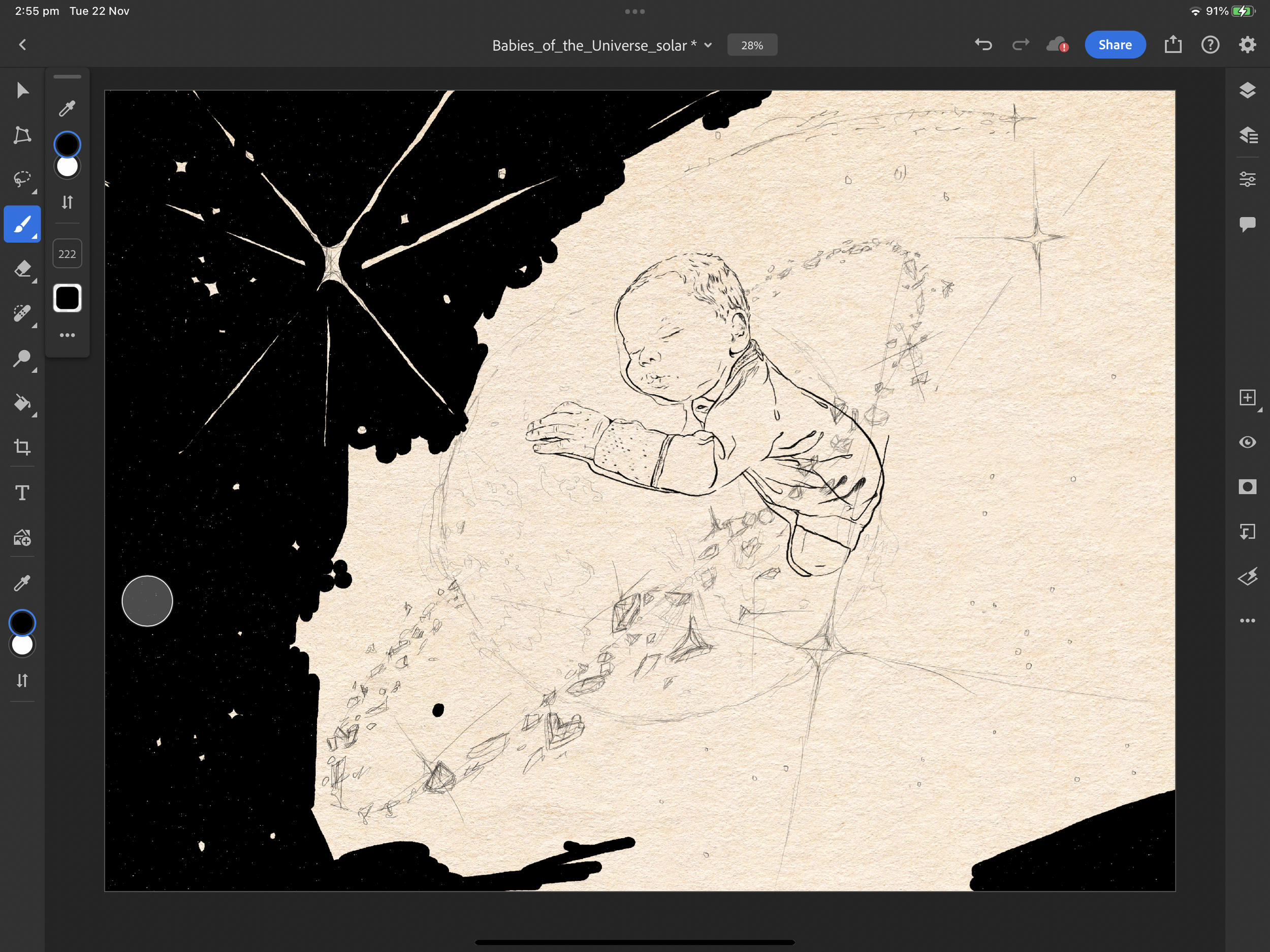My skill is based in hand drawn sketches. I have a lot to learn with digital illustration and spent most of my time testing ideas before falling in love with a single brush that felt authentic.